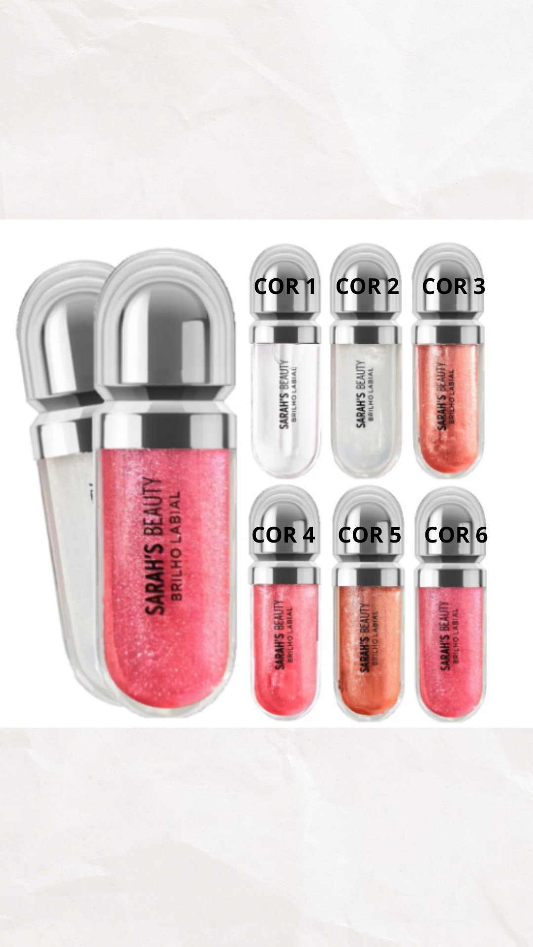 Be the first to review “Kit Com 2 Gloss Labial Sarahs Beauty Brilho Labial”