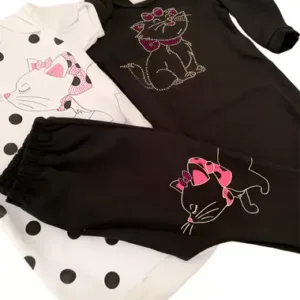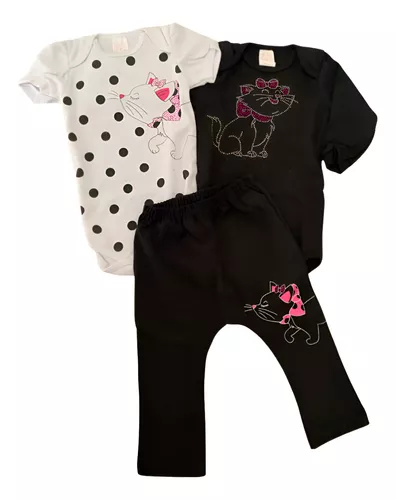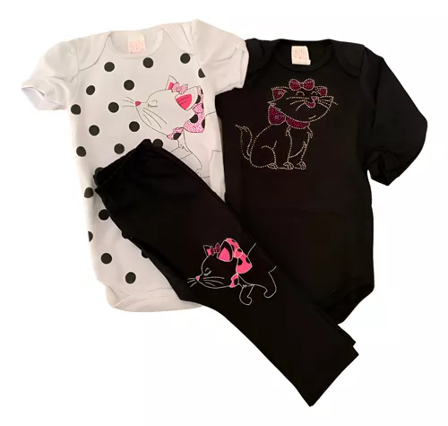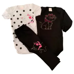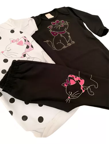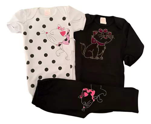 A calça, com uma estampa charmosa da gatinha marie, completa o look com um toque divertido e fofo. O elástico na cintura oferece um ajuste confortável, permitindo que a bebê se movimente com liberdade e sem incômodos.