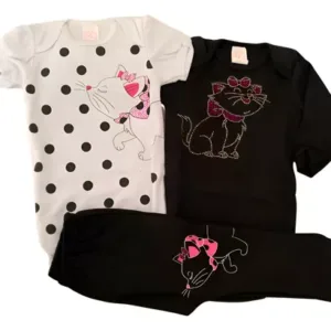 Com cores e estampas delicadas, o Conjunto 3 Peças Gatinha Marie é a escolha perfeita para o dia a dia da sua menina, proporcionando conforto e estilo em qualquer ocasião.
