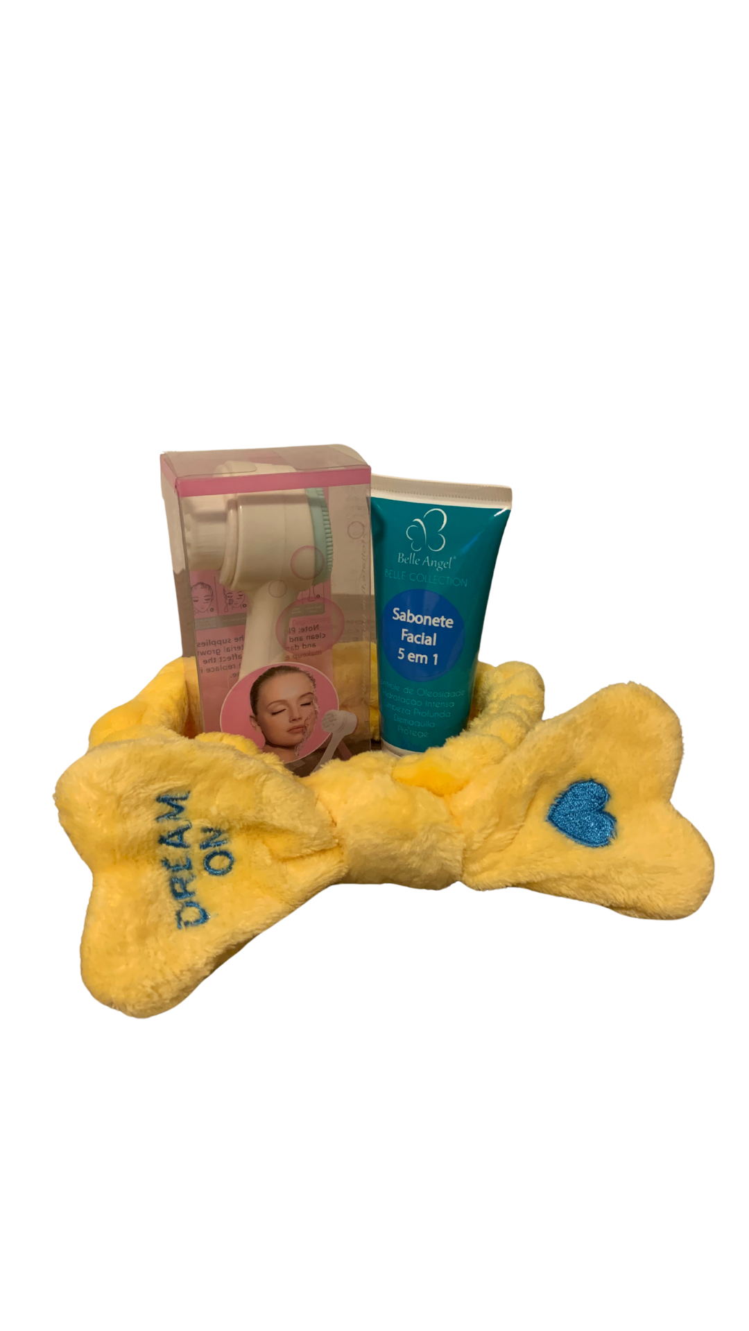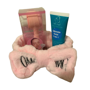 Faixa de Cabelo: Mantenha o cabelo longe do rosto enquanto realiza sua rotina de cuidados com a pele. Feita de material macio e elástico, esta faixa é confortável e segura, garantindo que seu cabelo fique protegido durante a aplicação dos produtos.