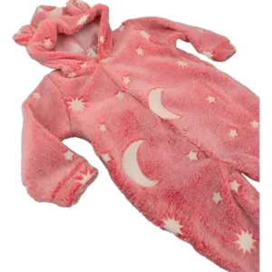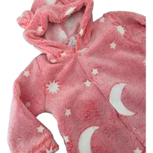 O grande diferencial deste modelo é o detalhe que brilha no escuro, transformando a hora de dormir em uma experiência mágica e divertida para o bebê. Ideal para noites mais frias, o macacão conta com mangas longas e fechamento frontal por botões, garantindo praticidade na hora de vestir e trocar fraldas.