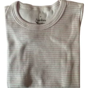 Encante o seu bebê com o estilo e o conforto do macacão curto Junkes rosa listrado 100% algodão. Uma escolha perfeita para criar momentos felizes e cheios de fofura durante toda a temporada de verão!